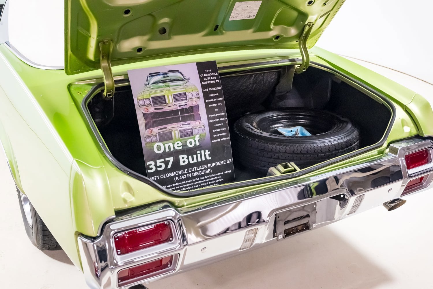 The 1971 Oldsmobile Cutlass SX is a rare breed, born from the muscle car era but built for those who wanted performance wrapped in luxury. With fewer than 2,000 produced in this configuration, the SX was a sleeper: packing 442-level power in a more refined shell. This example features the legendary 455 cubic inch V8 mated to an automatic transmission. The engine delivers massive torque, smooth power delivery, and unmistakable muscle car rumble. Unlike the aggressive W-30s of the time, the SX combined speed with subtlety. With just 23,965 miles showing, this green-over-white coupe stands as a well-preserved piece of American muscle history. It s an ideal blend of collector value and street-cruiser charm, offering vintage muscle in a more refined package. Our mission is to provide you with an unforgettable experience at our dealership. The moment you set foot through our doors, you will be treated with the same level of quality and excellence on which our illustrious brands are founded. Our sales team will guide you every step of the way, ensuring that each of your individual needs is addressed.